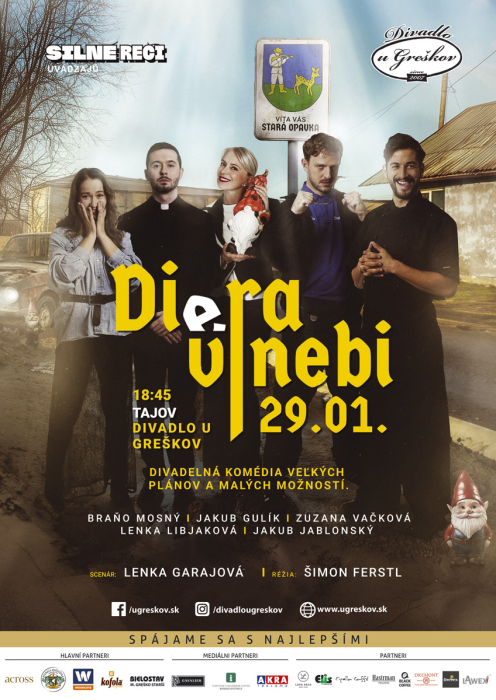 Stretnú sa farár, kuchár a starostka v diere na konci sveta a snažia sa prísť na to, ako ju urobiť fakt výnimočným miestom. Šlo by to, keby neboli všetci... v zapadnutej obci bez signálu, bez kostola a bez očakávaní. Aspoň že majú najväčšiu zbierku záhradných trpaslíkov široko ďaleko. Starostka chce za každú cenu pritiahnuť do obce investora. Jej syn tajne leští panvice v michelinskej reštaurácii a svoje ego na internete. Tajomný šéfkuchár rozumie zelenine a záhradným trpaslíkom. Jedine farár je normálny, káže v standupoch. Tento idylický obraz naruší príchod drzej a nečakane bohatej vnučky. Jej babka má s rodnou obcou svoje plány. Poľovníci strieľajú na všetko, čo sa pohne, záhradní trpaslíci sa váľajú v blate, ale nakoniec všetko dobre dopadne. Absurdná komédia s krásnym výhľadom do budúcnosti.